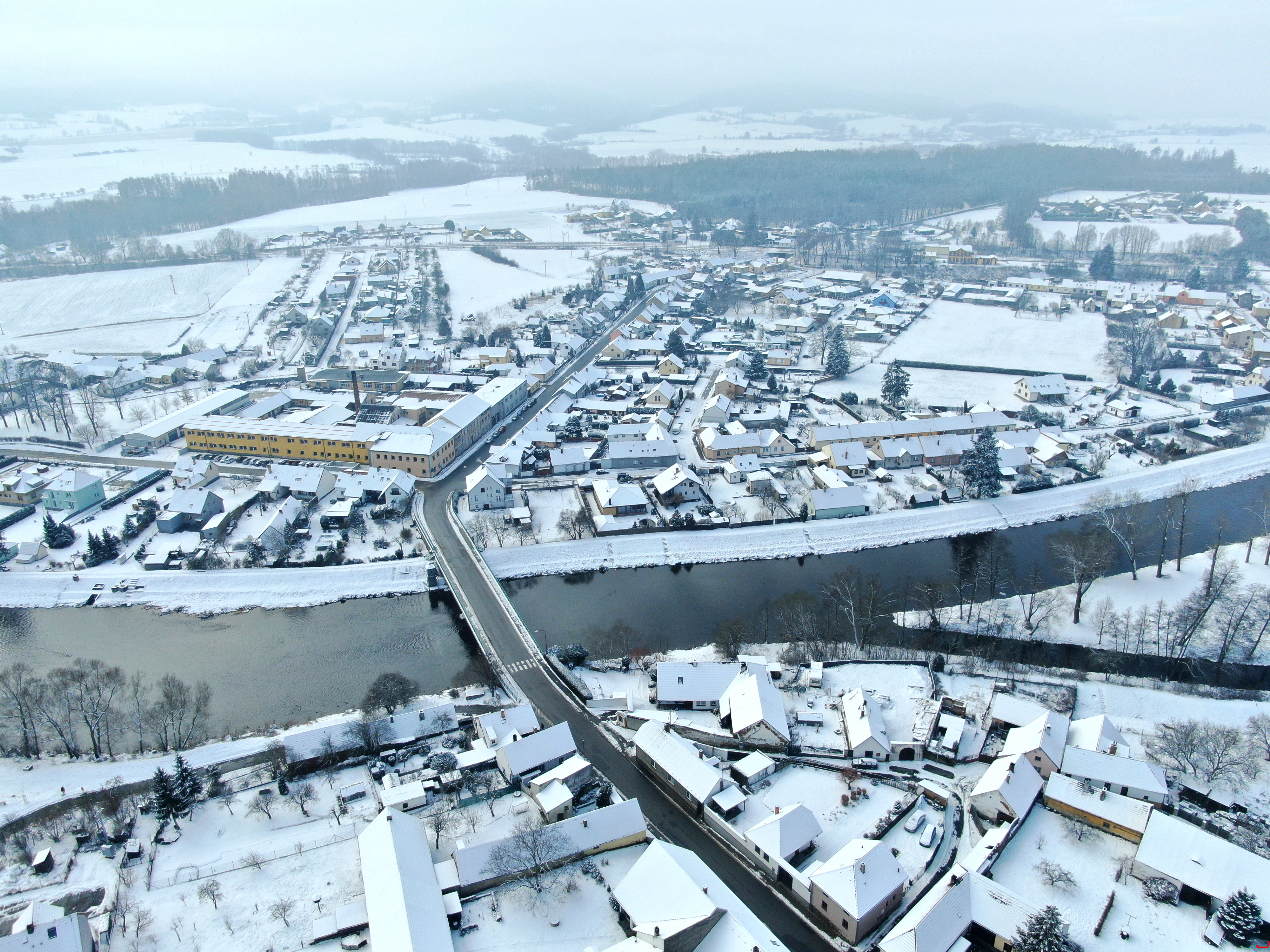 Letecké snímky Katovic - zima 2021