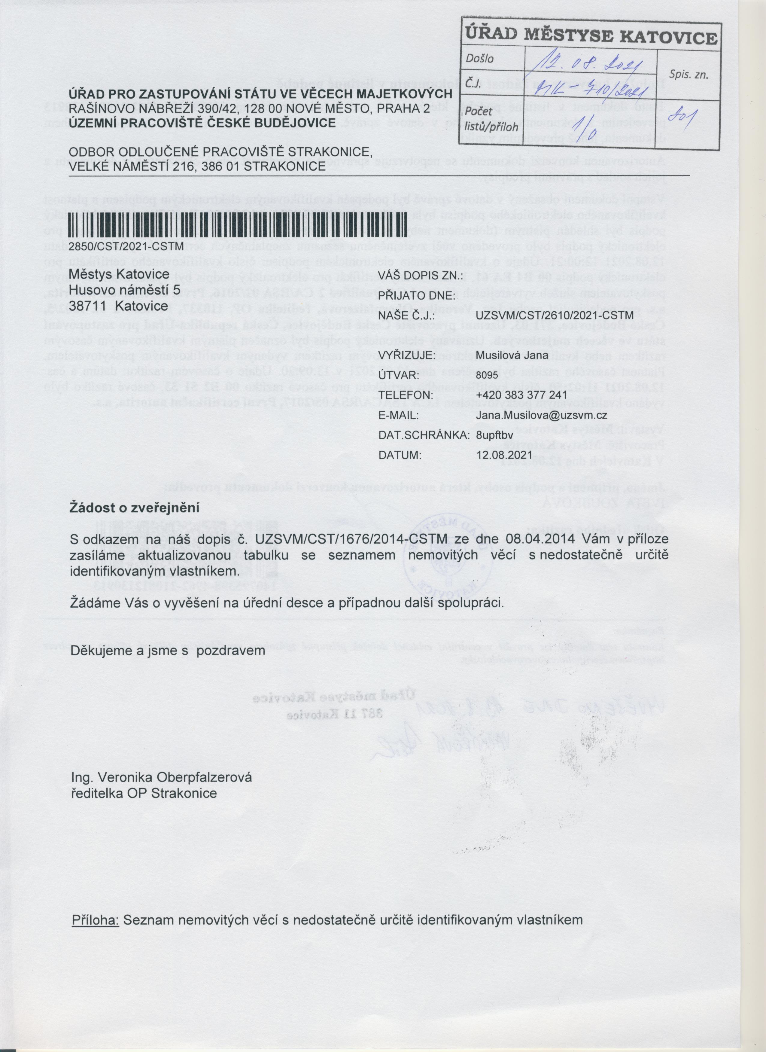 Zveřejnění seznamu nem. věcí s nedostatečně identifikovatelným vlastníkem