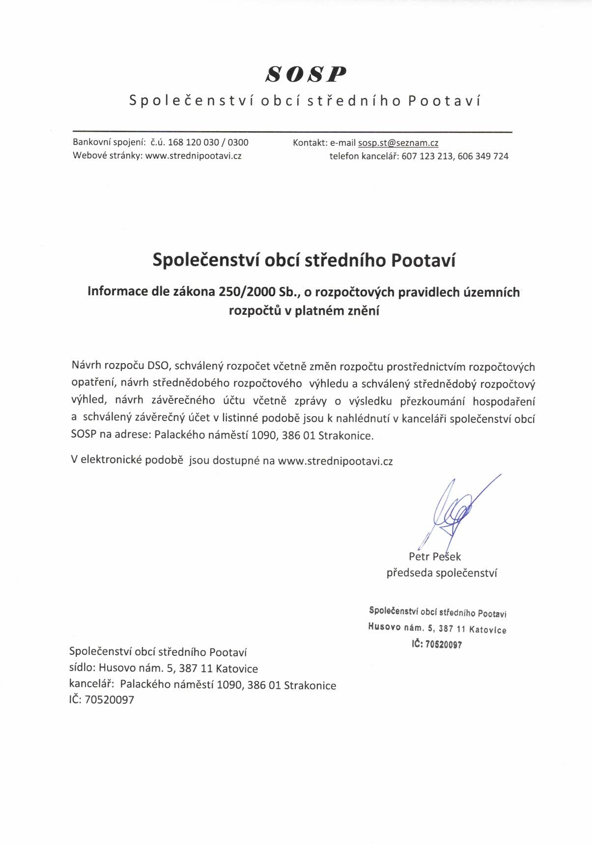 SOSP informace o rozpočtových pravidlech územních rozpočtů